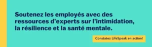 Nous en avons tous vu, peut-être même vécu. Vous vous souvenez de l’intimidation dans la cour de récréation : les provocations, l’isolement, le sentiment d’impuissance. Mais que se passe-t-il quand ces microagressions ou comportements toxiques se poursuivent à l’âge adulte et se manifestent dans notre lieu de travail? Qu’est-ce que l’intimidation au travail, et comment pouvons-nous y répondre? Octobre est le mois de prévention de l’intimidation, et nous mettons de l’avant les travaux de Janna Comrie, M.A., psychothérapeute agréée et experte de LifeSpeak, qui nous éclairera sur ce sujet important.